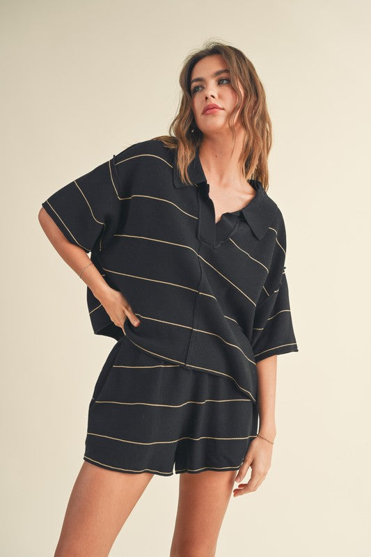 Get ready to show off your playful side with our Black and Tan Striped Knit Shorts! These unique shorts feature a fun black and tan striped design, perfect for adding some personality to your outfit. Made with a comfortable and breathable knit fabric, these shorts will keep you stylish and relaxed all day long.